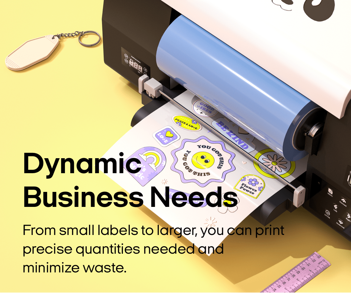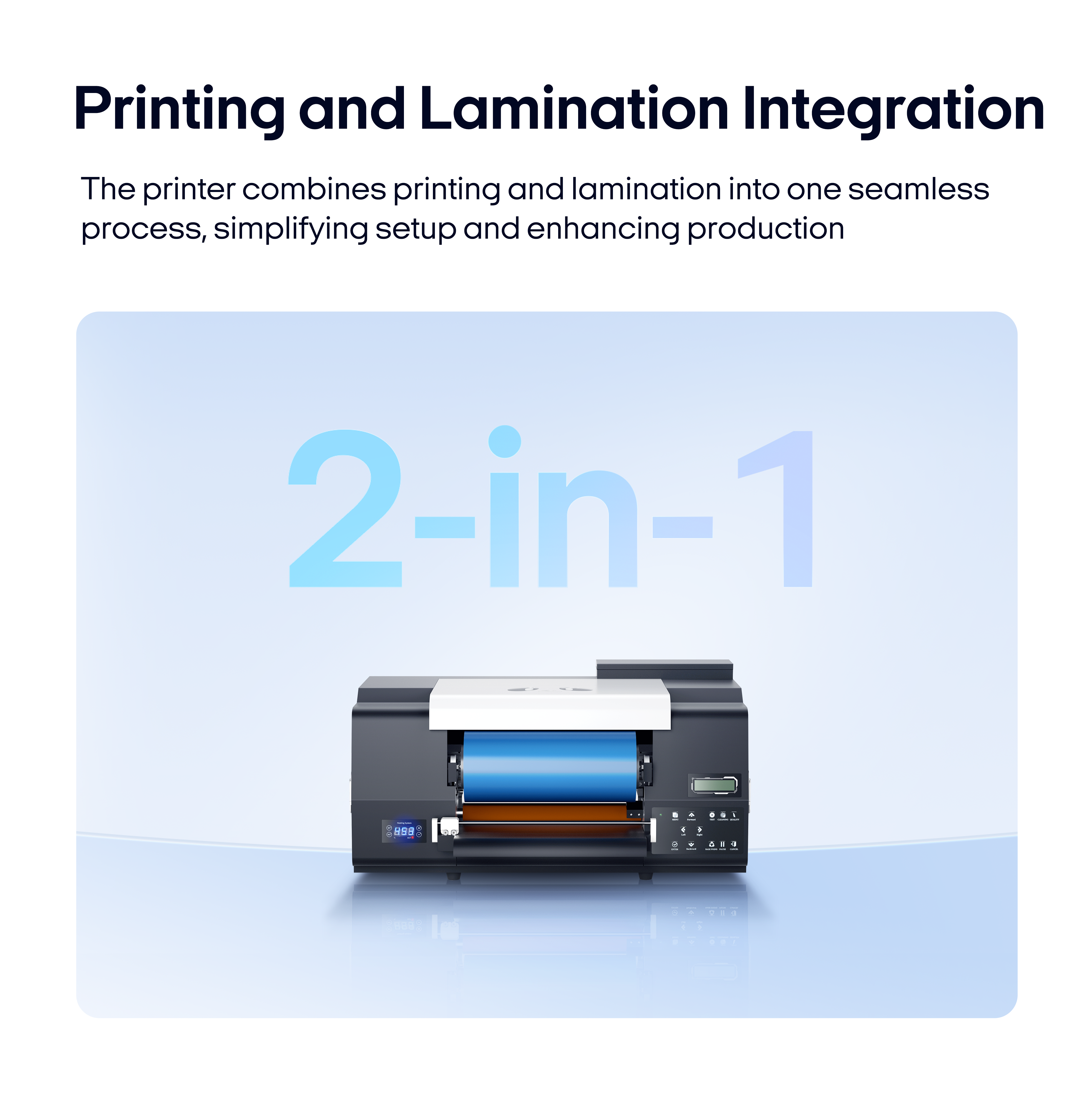 The printer combines printing and lamination into a single, seamless process, which simplifies the machine setups and speeds up the production.