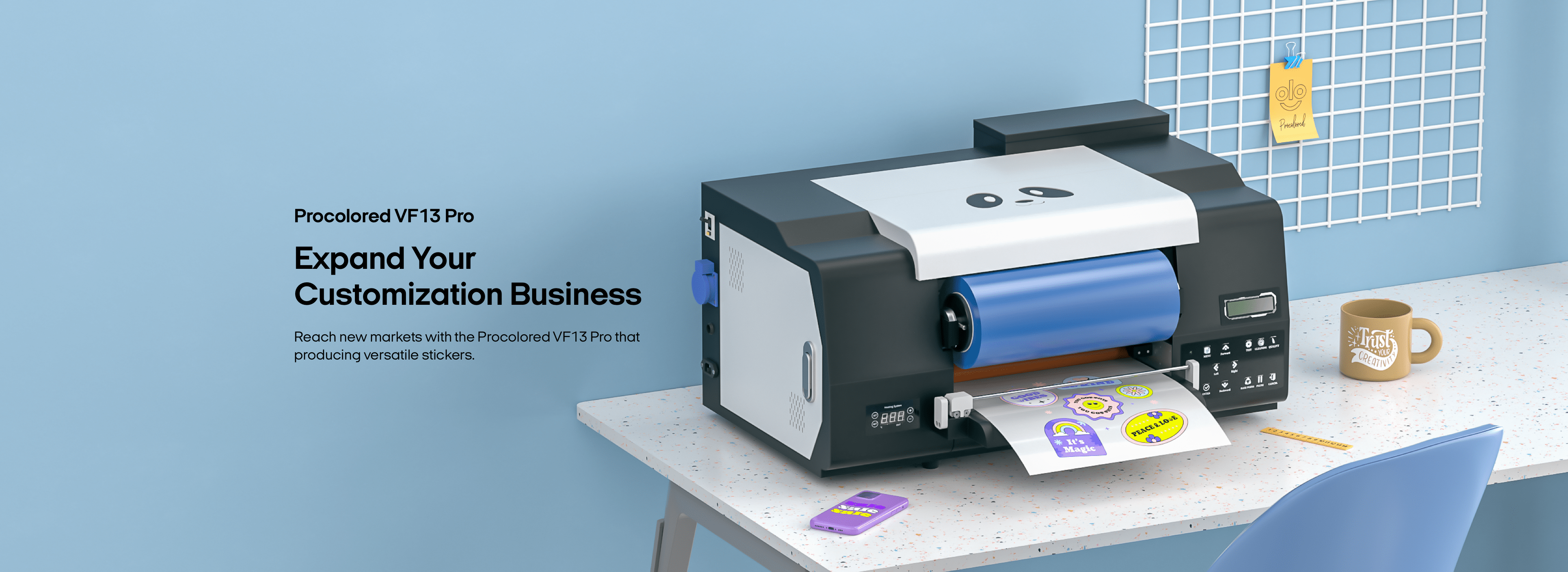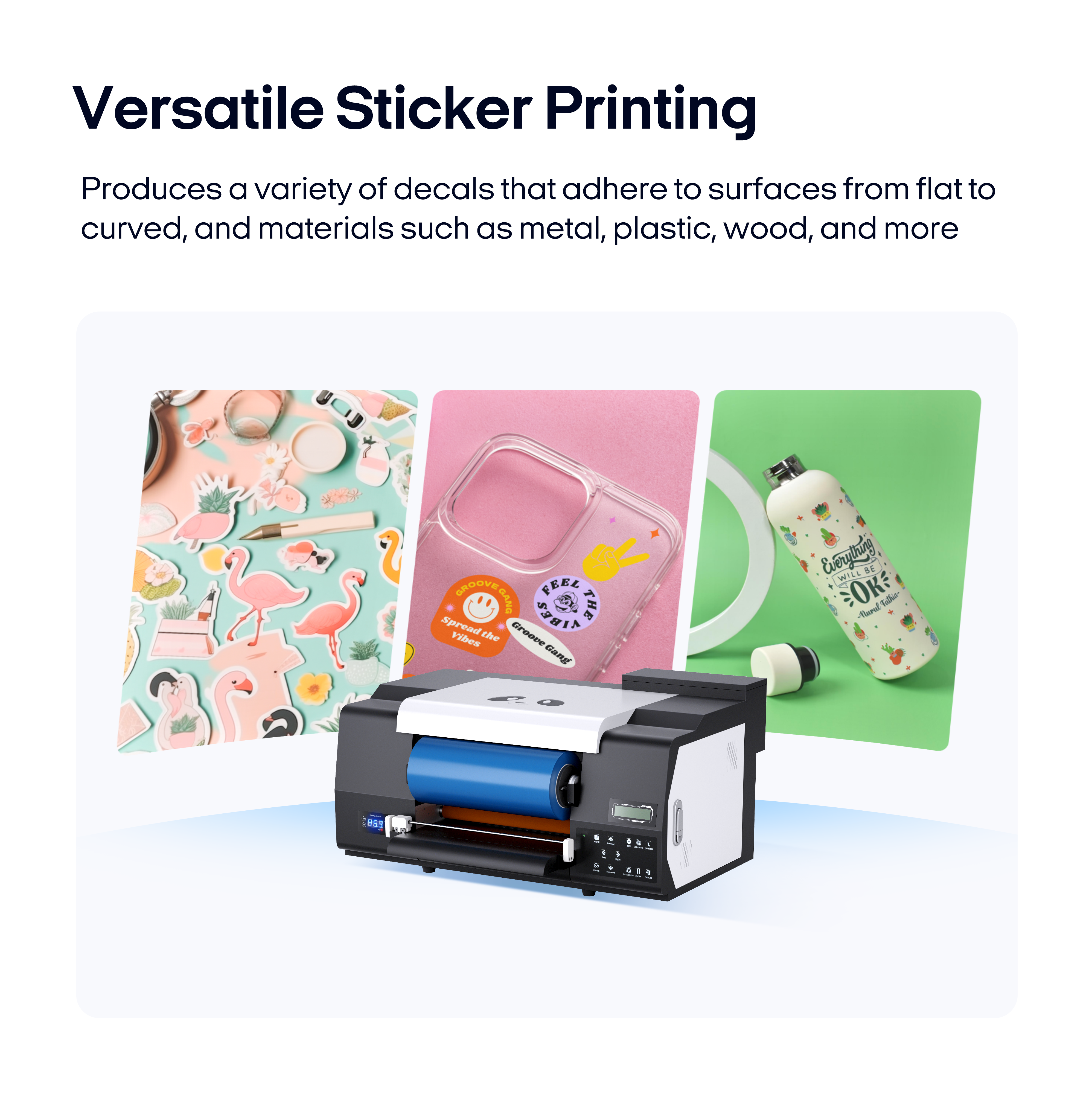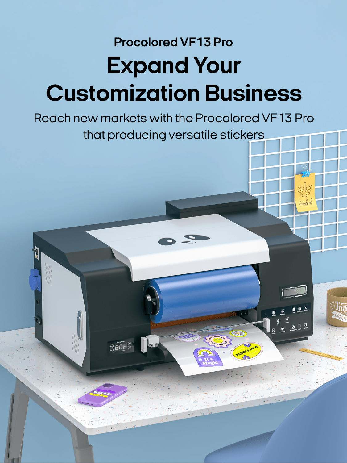 Procolored mini UV DTF printer is a two-in-one UV DTF printer, combining printing and laminating functions together. It’s an ideal machine for crystal sticker making and normally the working process involves printing (on A film first) - laminating (A B film) - transferring (from A film to B film). Crystal stickers can be pasted on irregular items, breaking through the limitation of direct printing. They can be designed and customized as cup decors, striking business logos or lovely stickers for children, and way more than these.With an mini UV DTF printer in hand, you can achieve all the decors you’ve imagined.