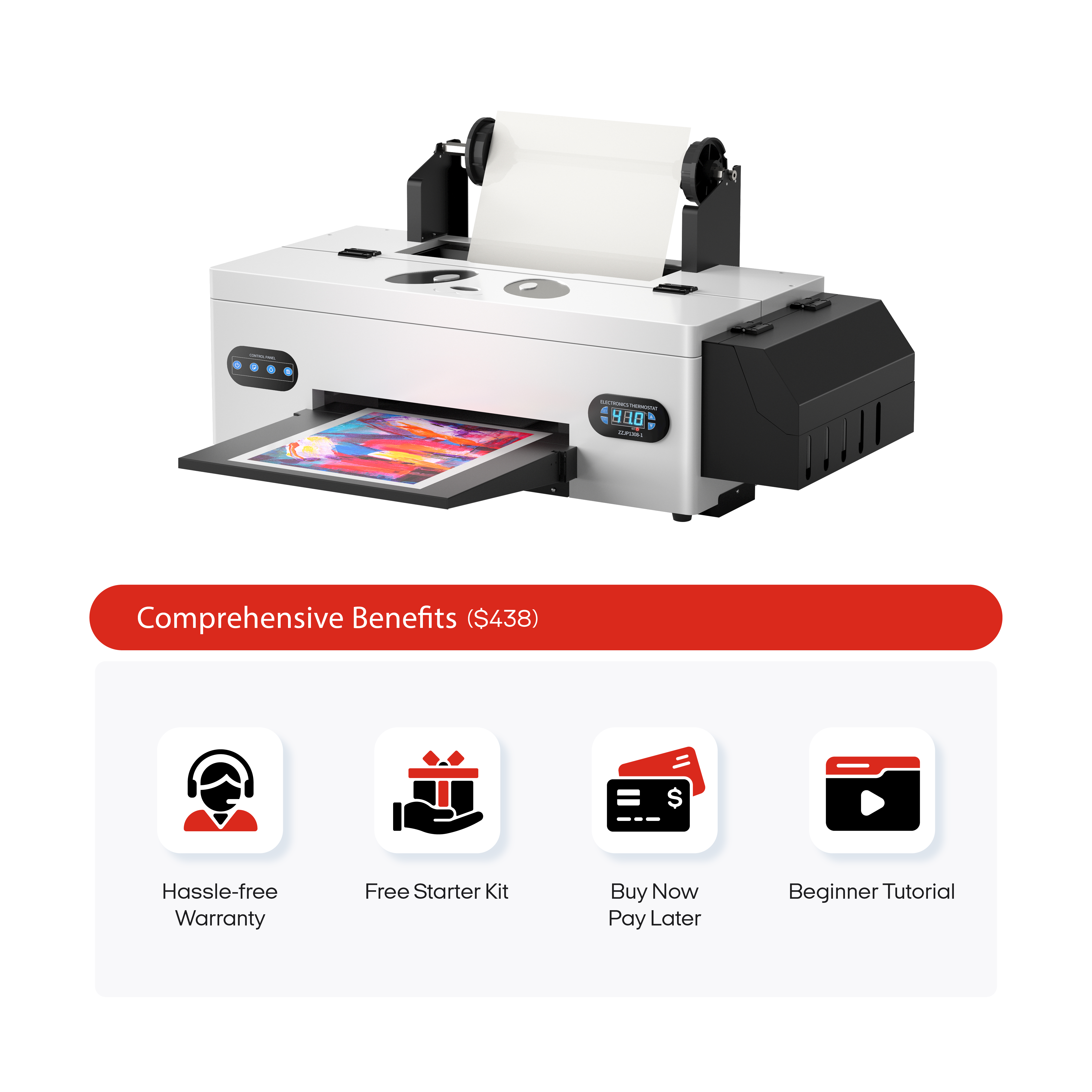 The printer comes with a protective cutter, allowing for simple and safe slicing of the printed film. It’s a must-have to make the printing workflow more streamlined and efficient.