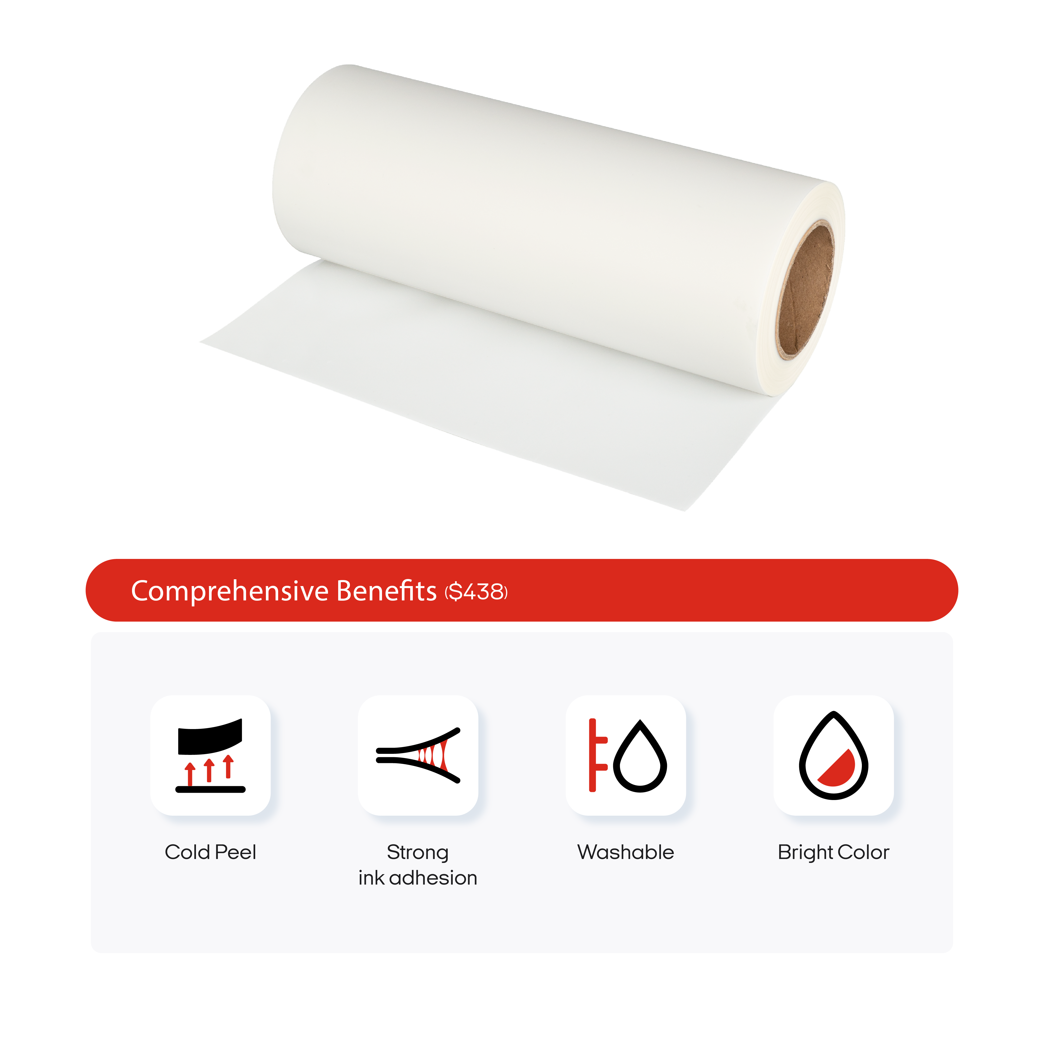 DTF PET Transfer Film Roll - work with all DTF printers utilizing DTF ink and DTF Transfer Film Powder. |