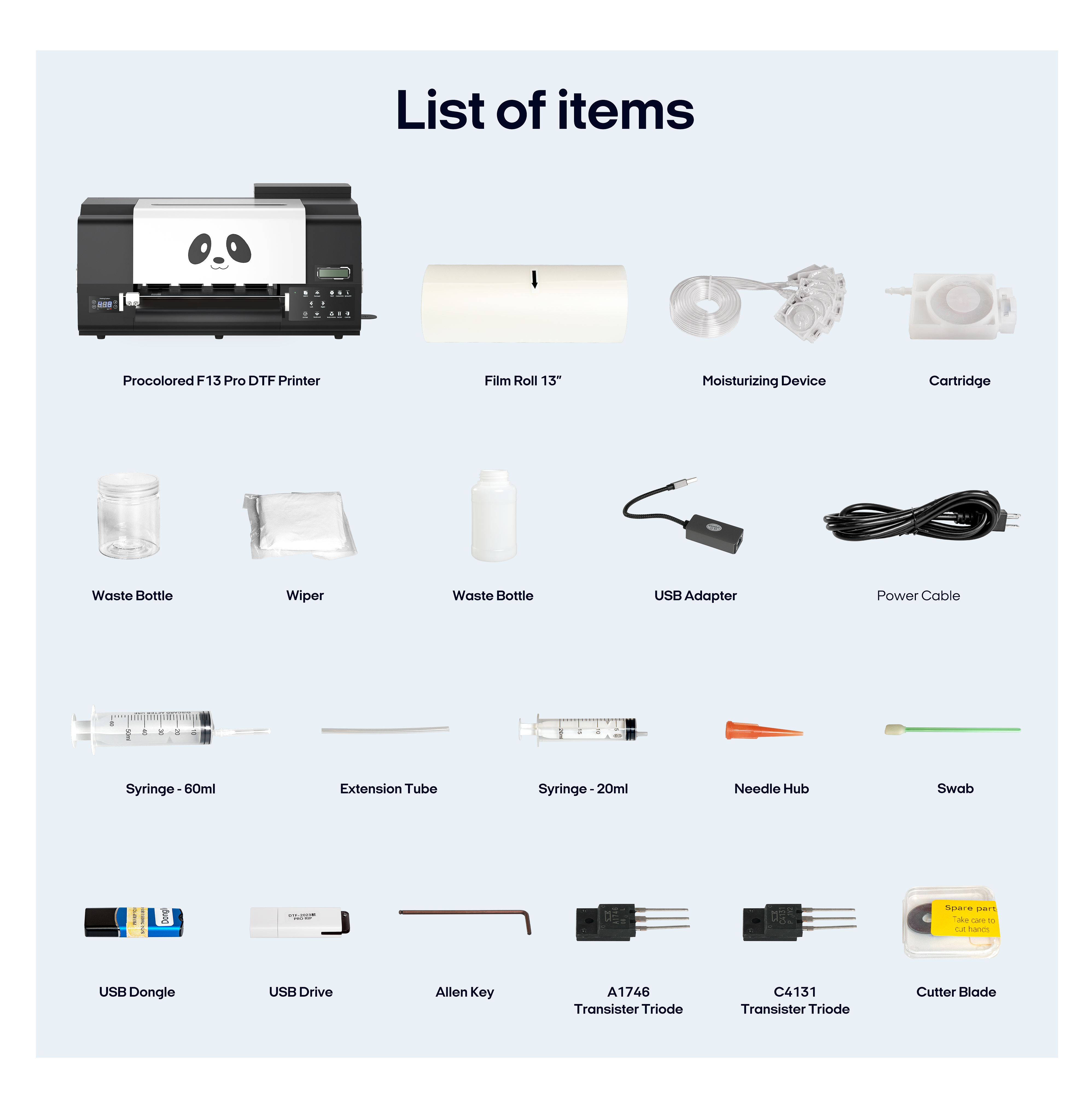 - Ink Tube/Dust Free Cloth/Syringe