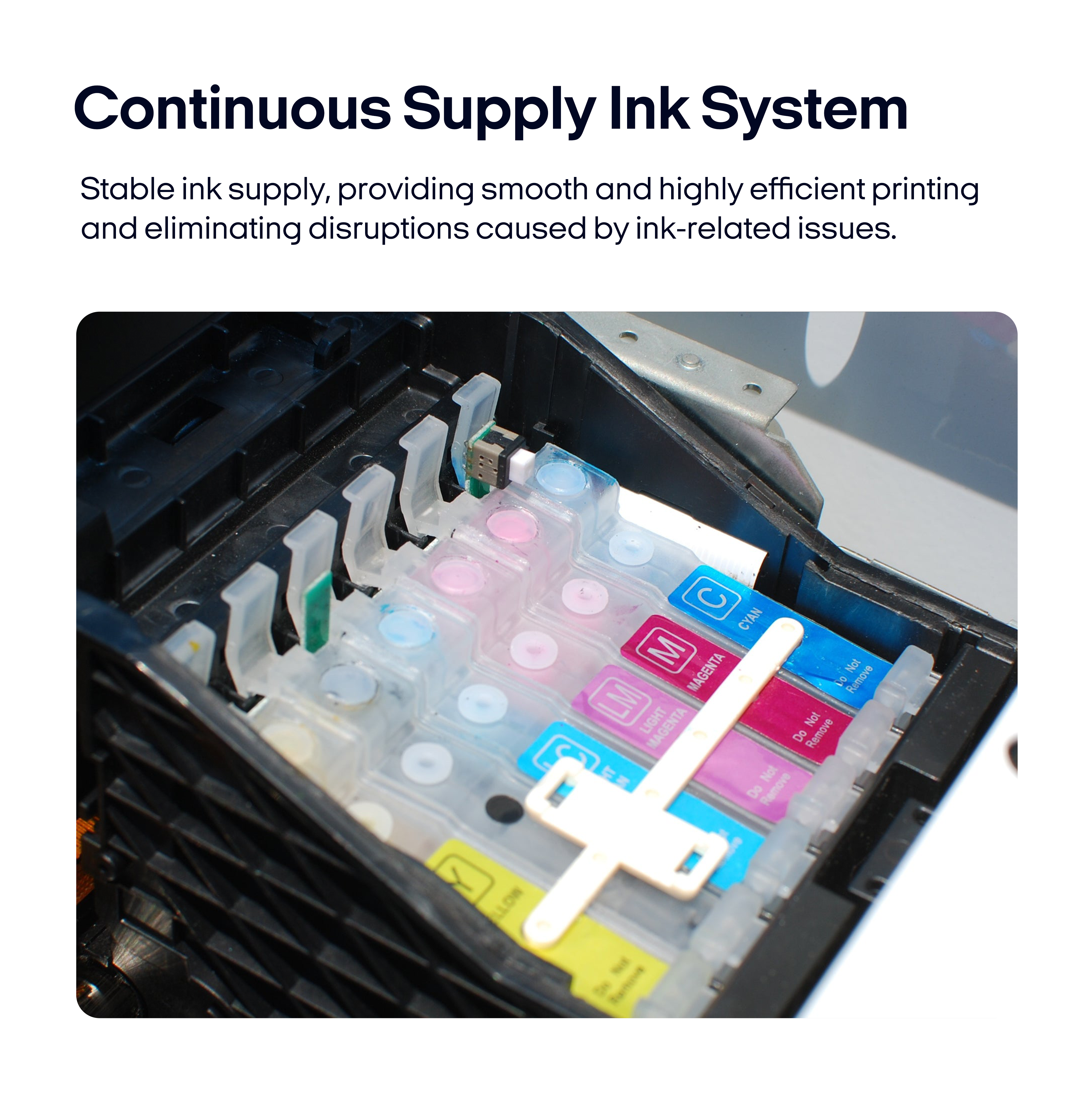 Continuous Ink Supply System – Providing continuous ink supply and uninterrupted printing.