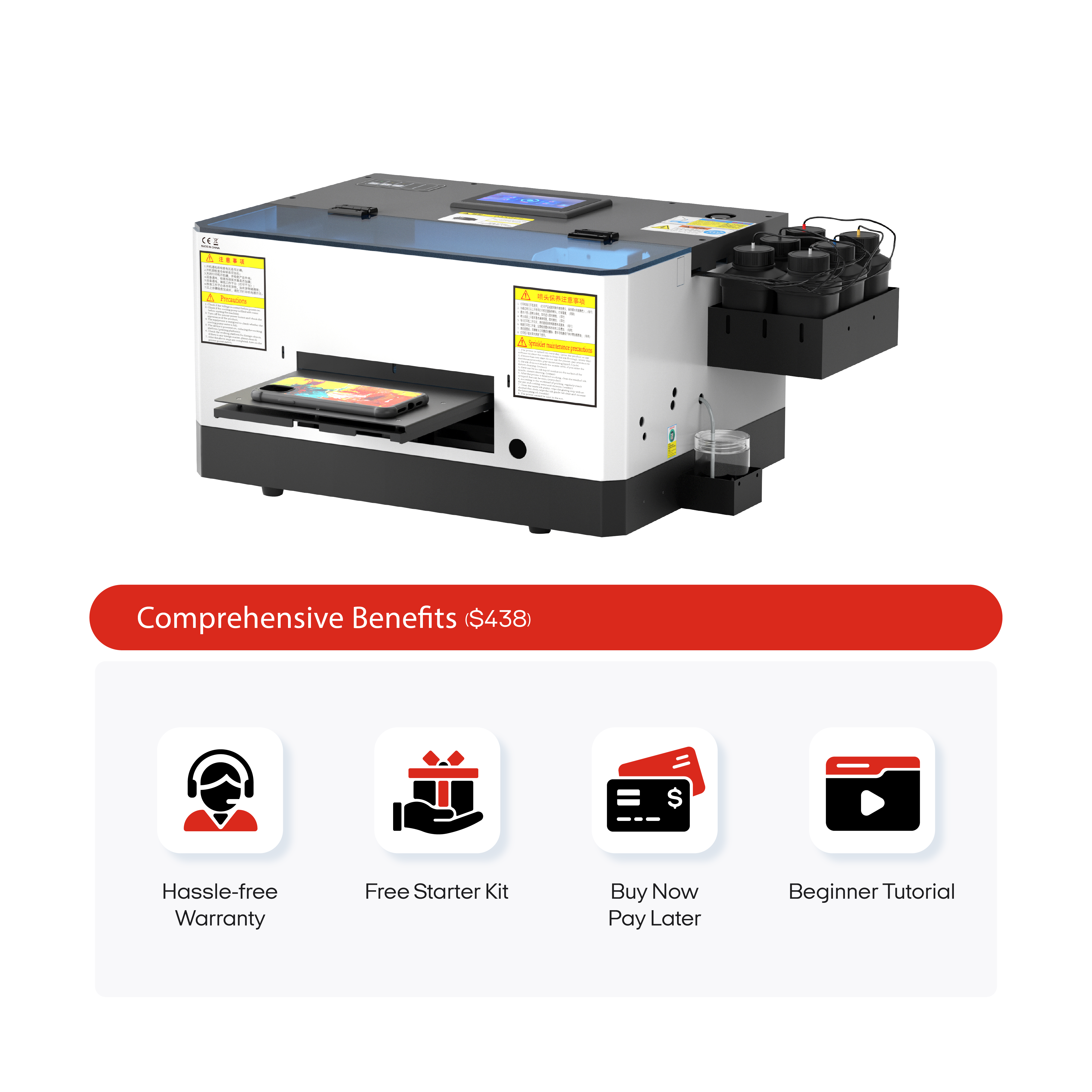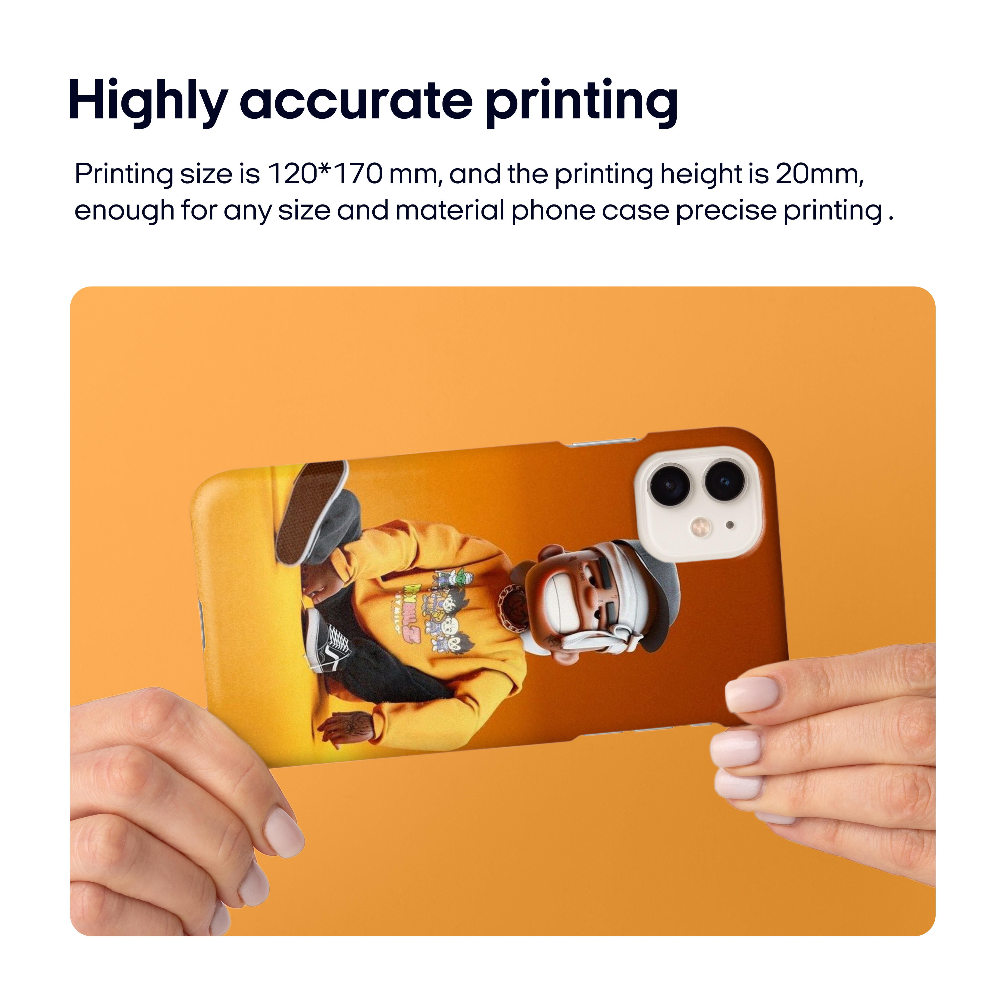 Precise and Quick Printing – Printing size 120*170 mm and printing height 20mm, suitable for printing on phone case of any size and material.