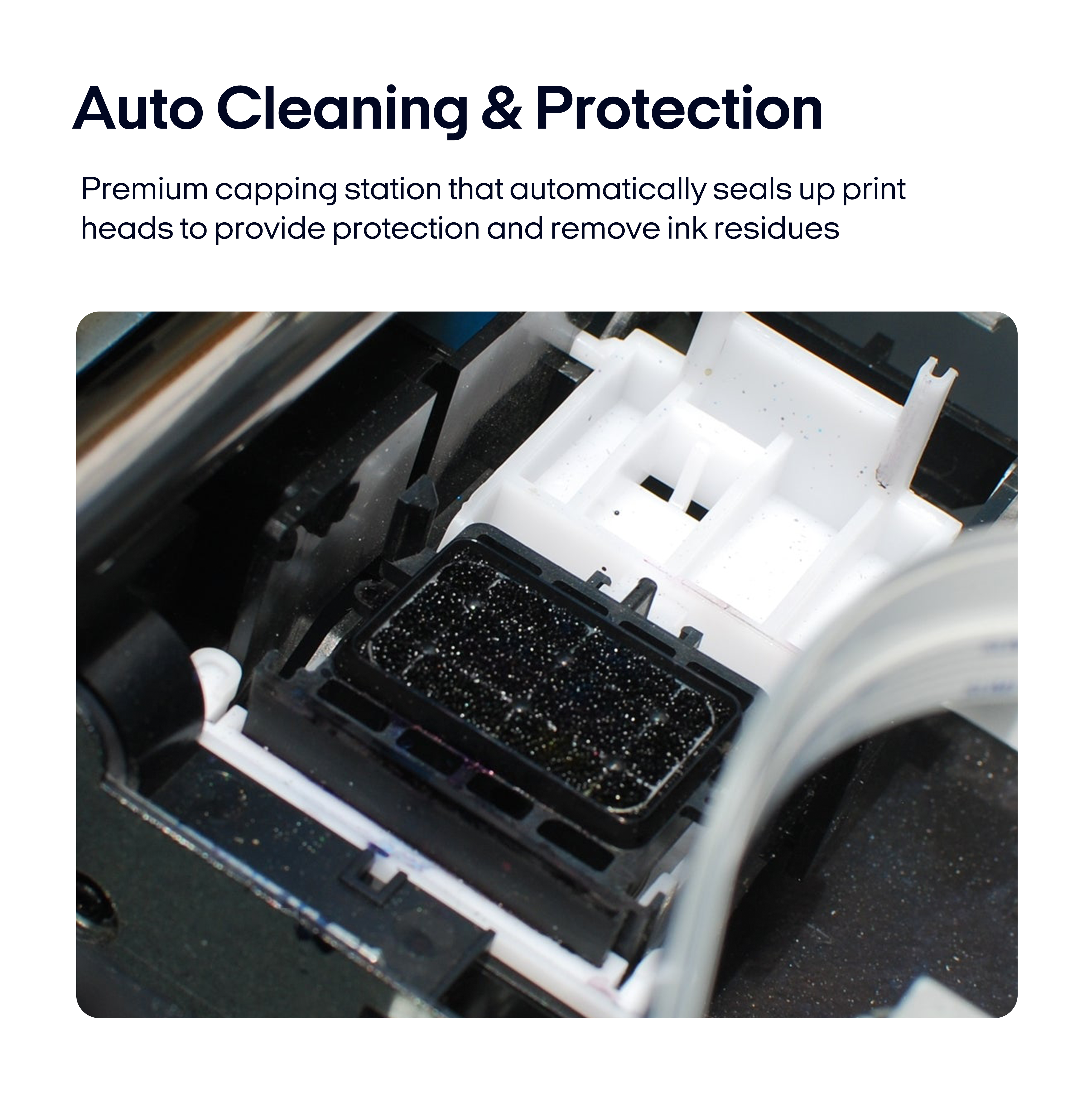 Printhead Auto-Cleaning - When printer is left on, it will automatically clean the printhead every 10 hours, consuming about 1ml ink per day.
