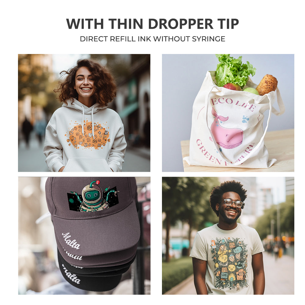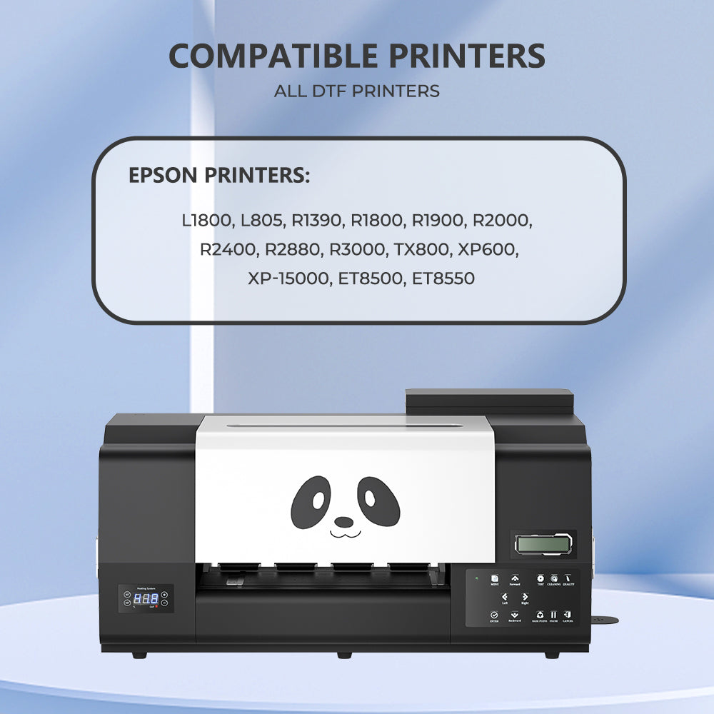 - 【COMPATIBILITY】Compatible with DTF and 6/8-color Epson printers.,such as L1800, L805, R1390, R1800, R1900, R2000, R2400, R2880, R3000, TX800, XP600, XP-15000, ET8500, ET8550 printer etc. Used together with DTF transfer film and DTF powder.